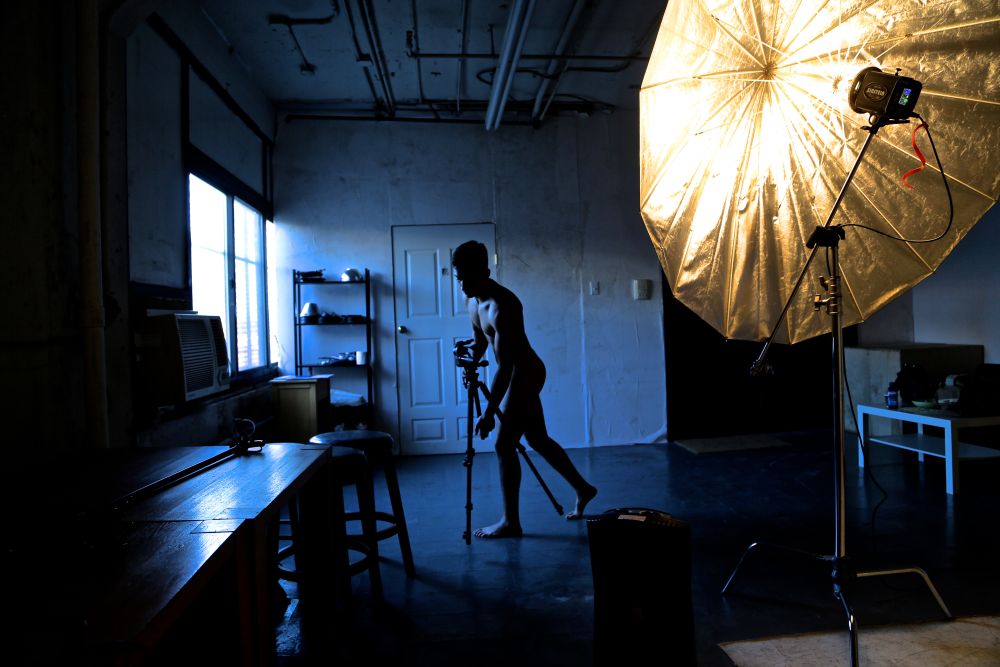 This is where Ryan comes in... instead of naked modeling, Ryan's role was that of naked production assistant. Richard shares he was pretty happy with Ryan as his new 'PA', he performed his duties skillfully, assisting with effects and lighting, set up and take down.