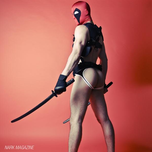 Searching for images of Tyler proved a fun task as in the fetish community he is known as Pup Amp. Tyler has combined his loves of video games and superheroes turning his nerdy geek side into a erotic hero of fantasy for many. The dressing up, which started for anime conventions has turned to undressing at conventions and on dance floors for a totally different type of audience.