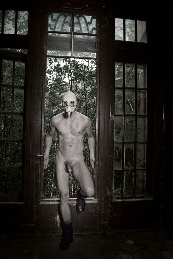 Caro D's career as photographer began two years ago after holding her first digital SLR camera in her hands. She began, like many photographers shooting animals, architecture and landscapes. Pretty soon she moved on models of the human form and it is now an important part of her life. Her idea for this shoot was relatively simple: A naked man in that old house, no portraits, no fashion and no porn. It was the view of photographer and model that covering DO-Mar's face in some shots, especially with the gas mask fit well into the ambience of the old farmhouse. A naked model bares all, but wearing a mask, there retained some private sphere, some distance between model, environment and viewer. I loved this series and the mask, so often covering soul, only adds to soul within this set of images.