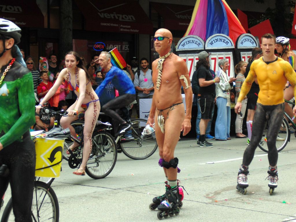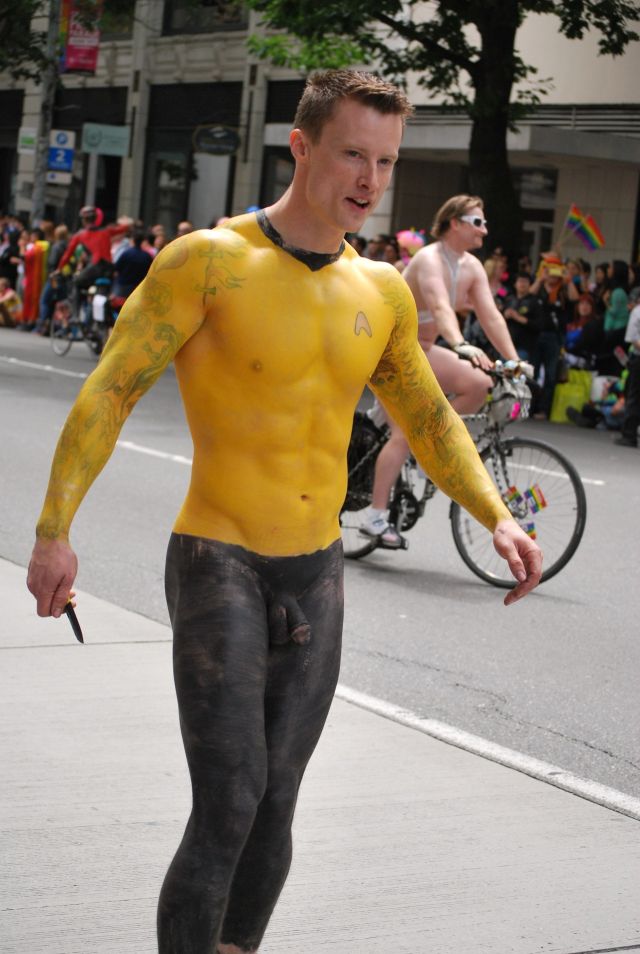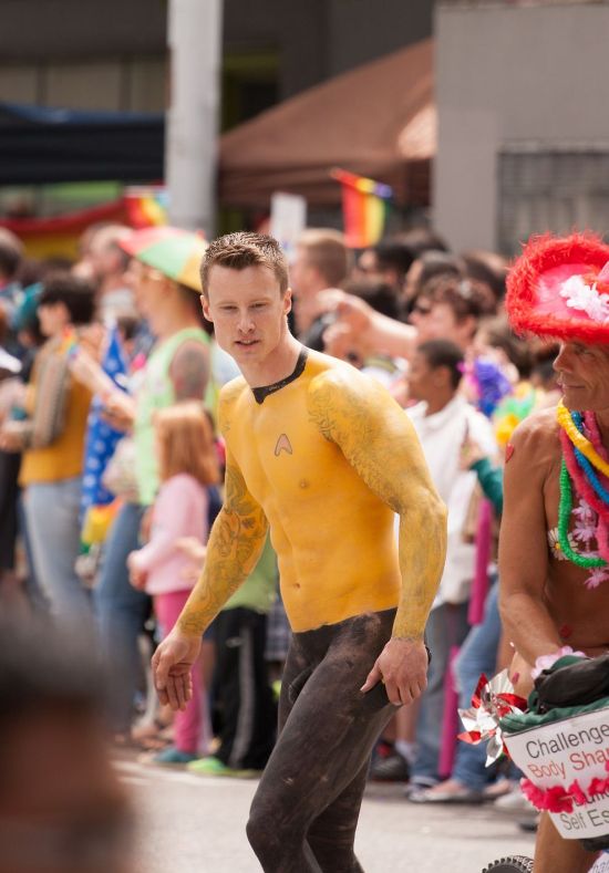 There were a lot of alien beings flying down the street at this years Seattle Solstice parade. Thus Enterprise crewman, was certainly was one of my favorites. I think his uniform should become standard issue for all those on the bridge for the next